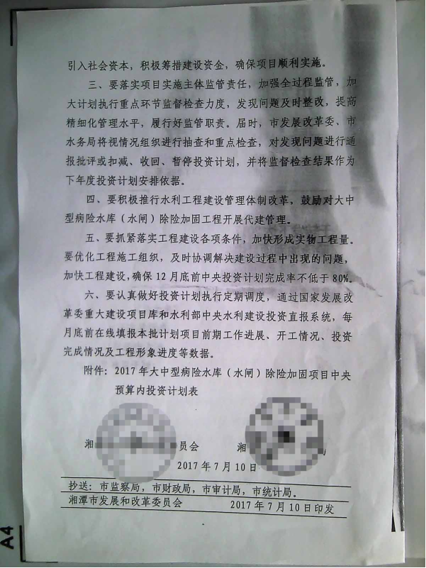 4、防汛经费:湘财农指[2017]107号下达补助资金180万元。县水务局、县财政局以潭水发[2017]33号文件将资金下达至各乡镇。